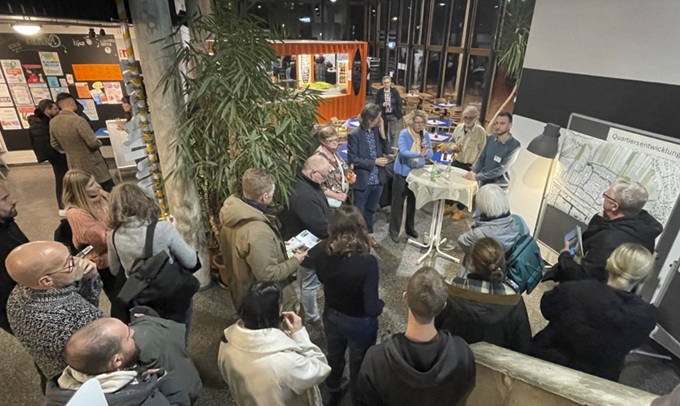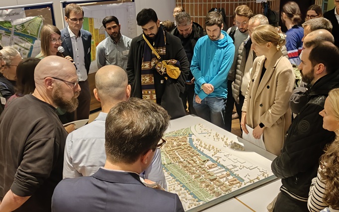 Nur einen Tag nach dem feierlichen Baustart für das Wilhelmsburger Rathausviertel fand der alljährliche Projektdialog für die Quartiere der IBA Hamburg auf der Elbinsel statt. Mehr als 100 interessierte Bürger:innen kamen am 12. November in das Bürgerhaus Wilhelmsburg, um sich über den aktuellen Planungsstand zu informieren. |